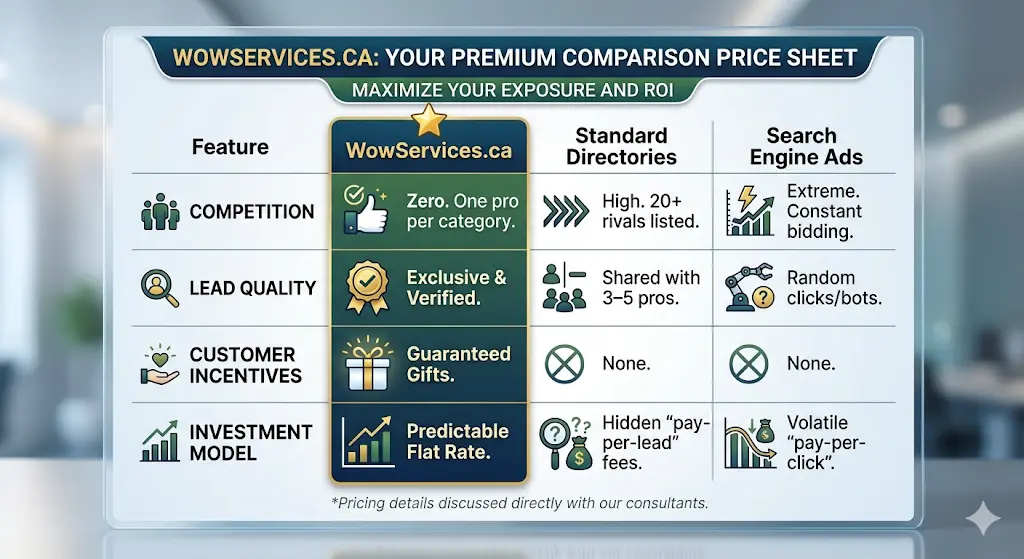 In a digital landscape where your business is just another name on a crowded list, WowServices.ca does things differently. We don’t sell your leads to five of your rivals, and we don’t charge you for “clicks” that go nowhere.